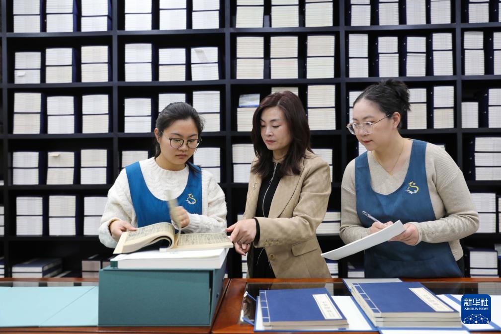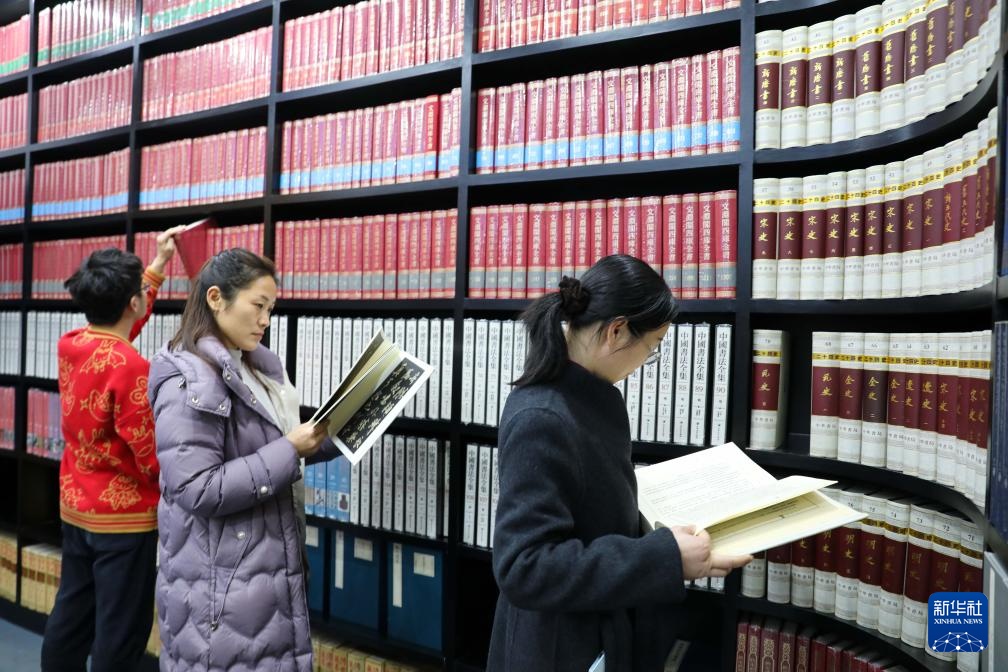 2月19日,工作人员在泾县三希堂线装文化园藏书馆检查再造古籍善本的保存状况。新华社记者 曹力 摄